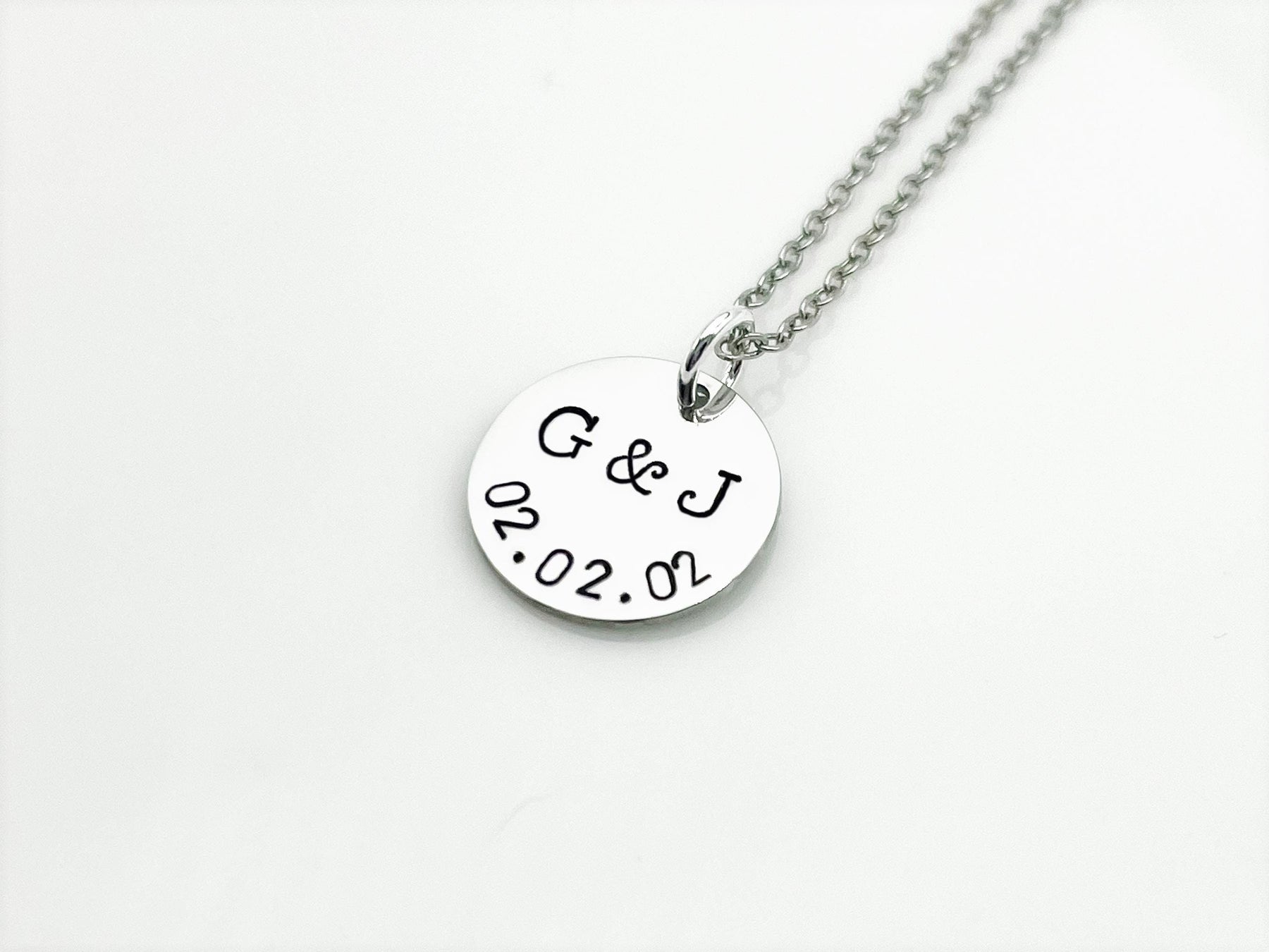 Just a little something to remember him by...these small couples charms are custom hand stamped with his and her initials along with an anniversary date along the bottom. The perfect wedding anniversary gift for her, delivered in a small gift box with your sweet message included.